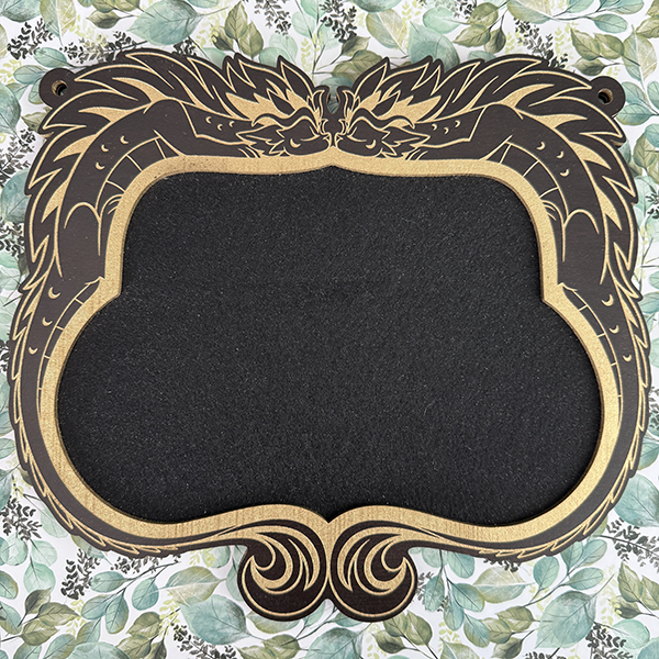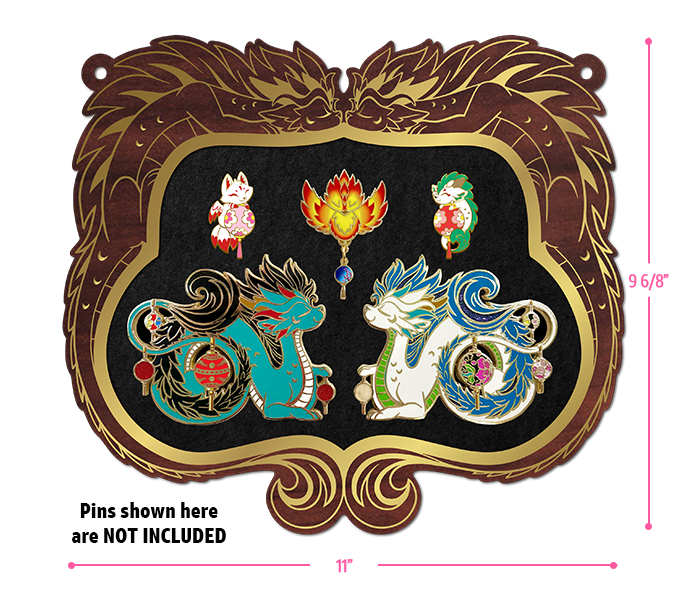 Made from ebony duro wood, beautifully engraved and filled with gold paint. The inner layer is stiff black felt that is both sturdy and gentle for your favorite pins.