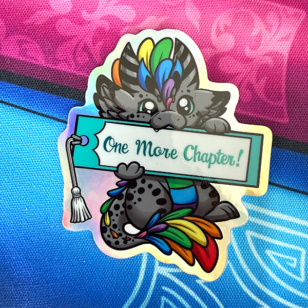 Zen proudly holds a bookmark (while biting on it gently) that reads "One More Chapter!"