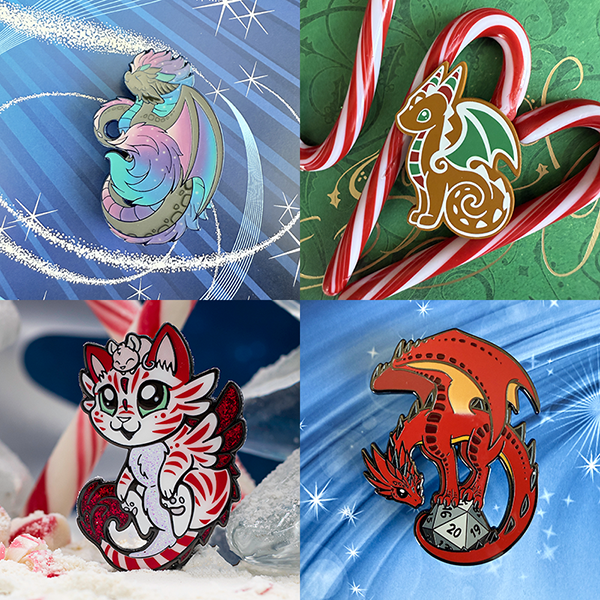 A perfect addition to any pin collector's pinboard! This festive gingerbread dragon design has been a fan favorite for years, now offered in pin form! Also available in sticker form for those who may not be into pin collecting.