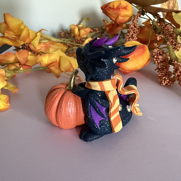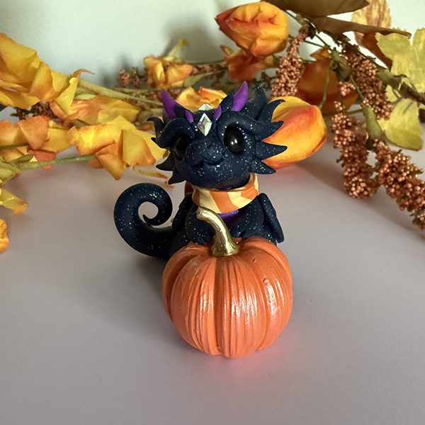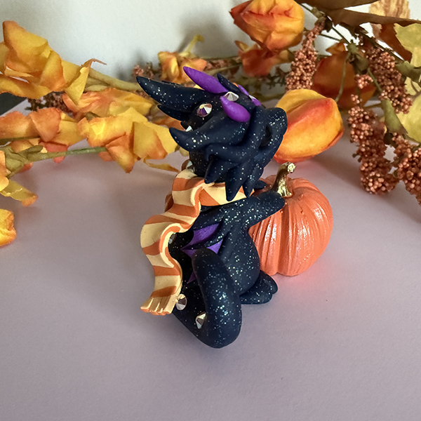 Own a rare one-of-a-kind original Dragons and Beasties sculpture! Don't miss the chance to adopt chipper little Pecan! Made from high quality colored polymer clay and glass crystals. Stamped with the artist's mark (Becca Golins) on the bottom. 2.5 inches tall.
