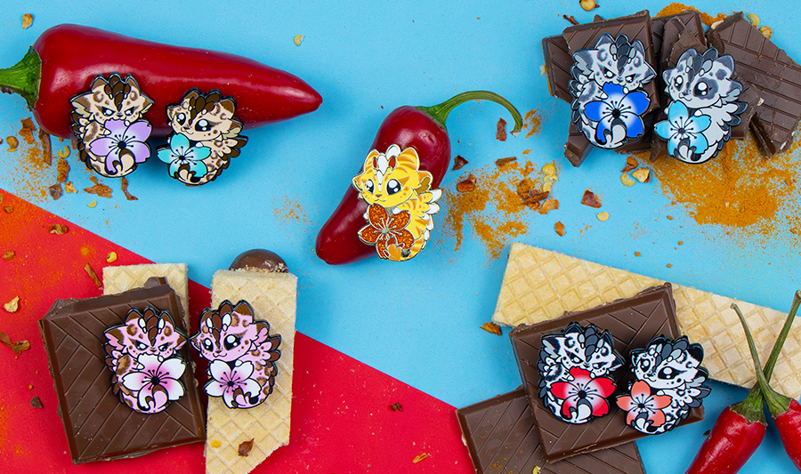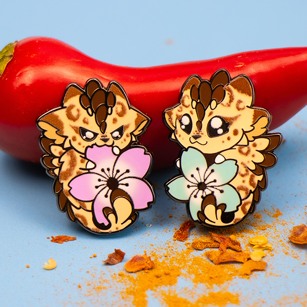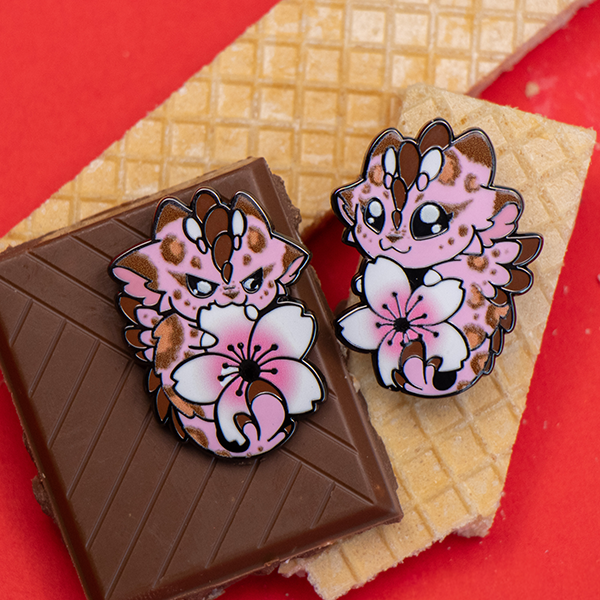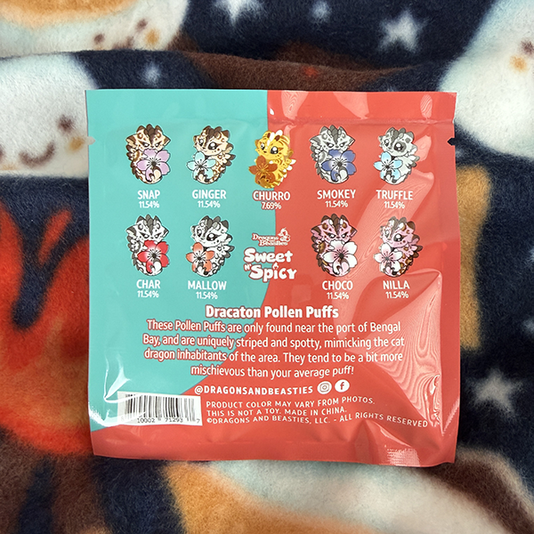 - Contains 1 random Sweet N' Spicy Dracaton Puff 1.25" Hard Enamel Pin with UV printed details